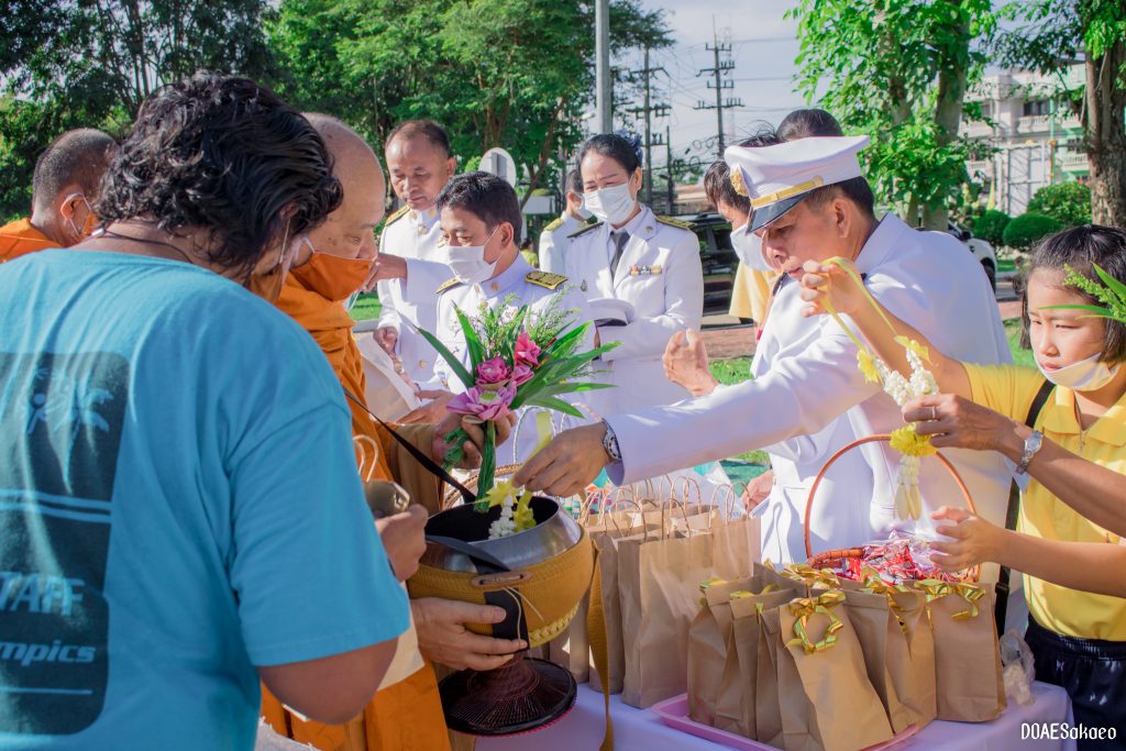 เกษตรสระแก้ว ร่วมพิธีทำบุญตักบาตรข้าวสารอาหารแห้ง พระภิกษุสงฆ์ จำนวน 69 รูป ถวายเป็นพระราชกุศล และพิธีลงนามถวายพระพรชัยมงคล ถวายสัตย์ปฏิญาณการเป็นข้าราชการที่ดี