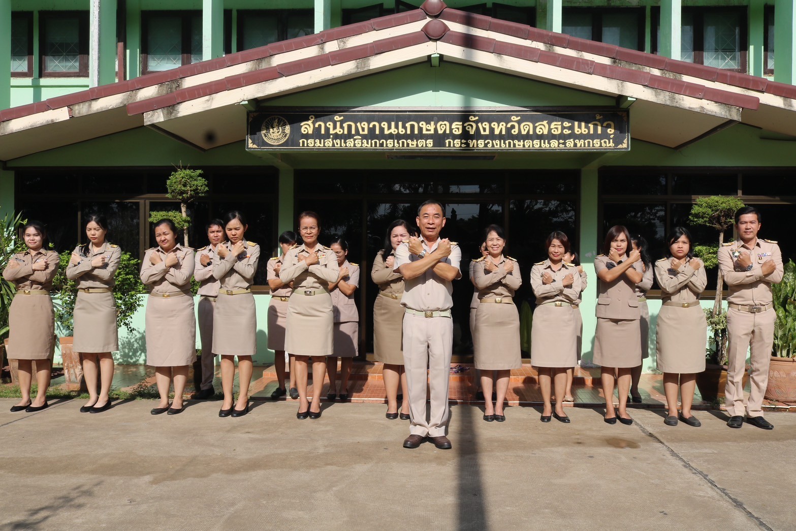 วันพุธที่ 4 ธันวาคม 2567 เวลา 09.00 น. นายจงสวัสดิ์ มณีจอม เกษตรจังหวัดสระแก้ว พร้อมด้วยหัวหน้ากลุ่ม/ฝ่ายทุกกลุ่ม และเจ้าหน้าที่สำนักงานเกษตรจังหวัดสระแก้ว จัดกิจกรรม “DOAE โปร่งใส หัวใจคุณธรรม” เพื่อร่วมรณรงค์การเสริมสร้างวัฒนธรรมองค์กรที่มุ่งเน้นความโปร่งใสและการส่งเสริมการมีส่วนร่วมของบุคลากรในการต่อต้านการทุจริตทุกรูปแบบ และประกาศเจตนารมณ์ต่อต้านการทุจริตและปฏิญาณตนในการปฏิบัติหน้าที่อย่างเต็มความสามารถ ด้วยความซื่อสัตย์สุจริต ณ สำนักงานเกษตรจังหวัดสระแก้ว
