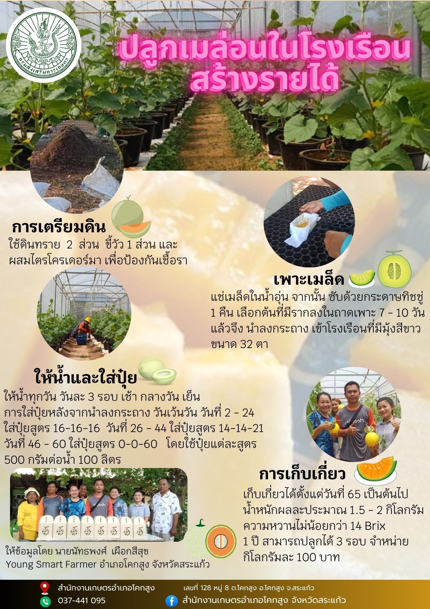 ปลูกเมล่อนในโรงเรือนสร้างรายได้