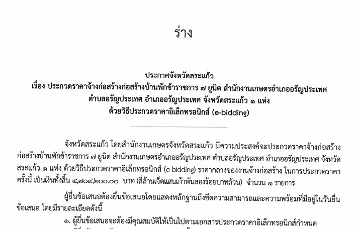 เรื่อง ประกวดราคาจ้างก่อสร้างบ้านพักข้าราชการ 7 ยูนิต สำนักงานเกษตรอำเภออรัญประเทศ