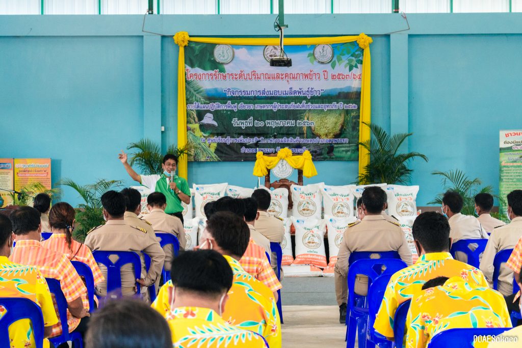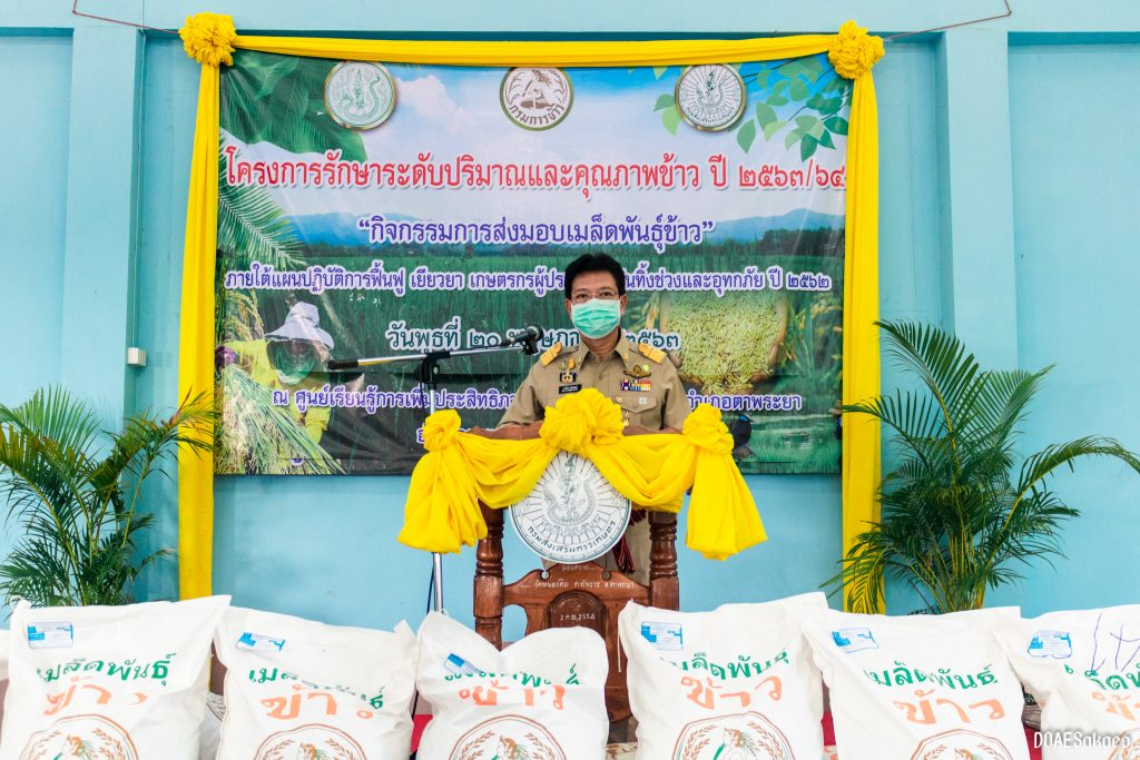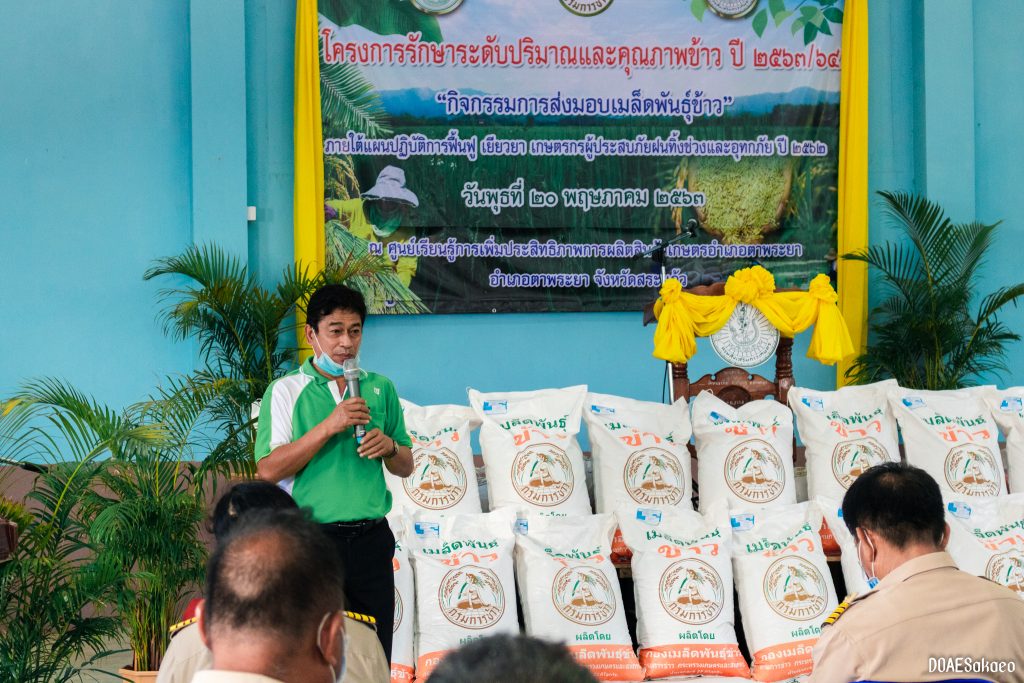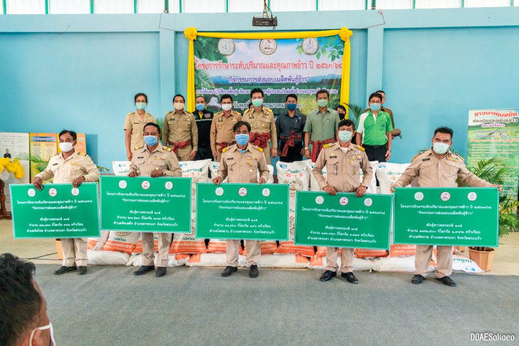 เกษตรสระแก้ว ร่วมกิจกรรมการส่งมอบเมล็ดพันธุ์ข้าว โครงการรักษาระดับปริมาณและคุณภาพข้าว ปี 2563/64 ภายใต้โครงการตามแผนปฏิบัติการฟื้นฟู เยียวยา เกษตรกรผู้ประสบภัยฝนทิ้งช่วงและอุทกภัย ปี 2562 และปล่อยขบวนรถเมล็ดพันธุ์เพื่อส่งให้เกษตรกรที่เข้าร่วมโครงการต่อไป