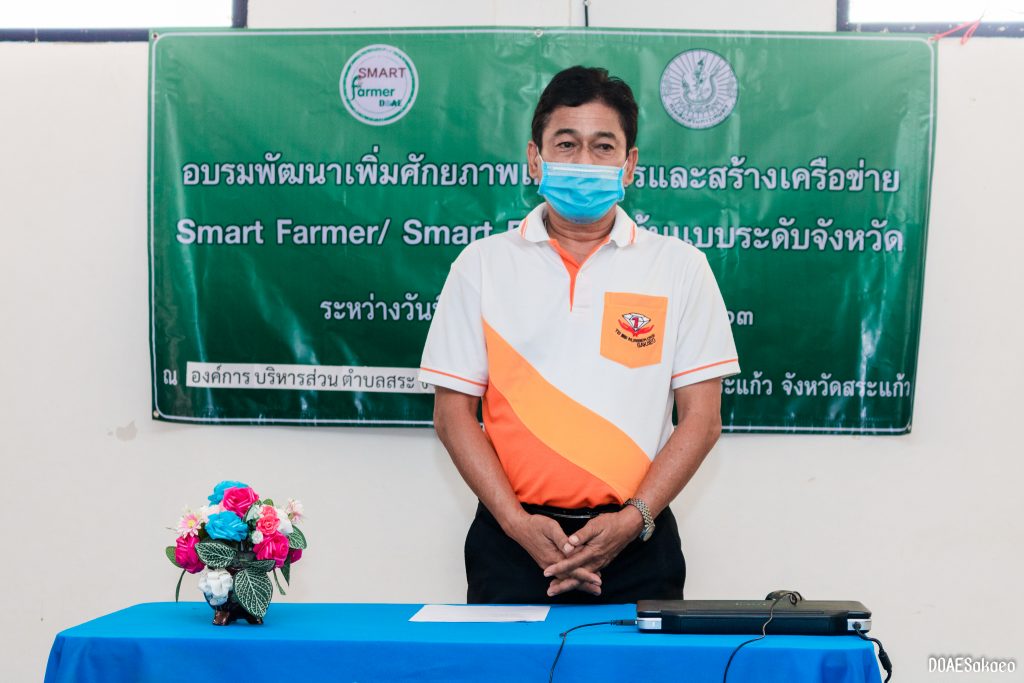 วันพฤหัสบดีที่ 21 พฤษภาคม 2563 นายประจักร์ ประสงค์สุข เกษตรจังหวัดสระแก้ว เป็นประธานเปิดการอบรมพัฒนาเพิ่มศักยภาพเกษตรกรและสร้างเครือข่าย Smart Farmer/Smart Farmer ต้นแบบ ระดับจังหวัด โดยกลุ่มส่งเสริมและพัฒนาเกษตรกร ณ ห้องประชุมองค์การบริหารส่วนตำบลสระขวัญ อำเภอเมืองสระแก้ว จังหวัดสระแก้ว เกษตรกรเป้าหมายประกอบด้วยสมาชิกกลุ่มส่งเสริมอาชีพการเกษตร 5 อำเภอ ได้แก่ อำเภอเมืองสระแก้ว ตาพระยา วัฒนานคร วังน้ำเย็น และเขาฉกรรจ์ เพื่อส่งเสริมและพัฒนาศักยภาพของเกษตรกรให้เป็นเกษตรกรปราดเปรื่องและยกระดับเกษตรกรเป็นผู้ประกอบการเกษตรที่มีศักยภาพในการเพิ่มประสิทธิภาพด้านการผลิตและการเพิ่มมูลค่าสินค้าเกษตร