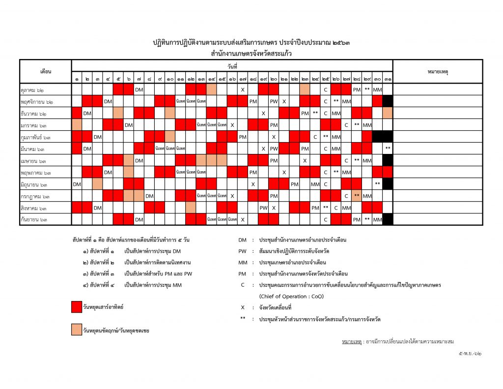 ปฏิทินการปฏิบัติงานตามระบบส่งเสริมการเกษตร ประจำปีงบประมาณ พ.ศ. 2563
